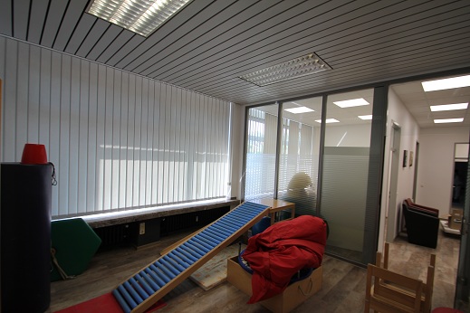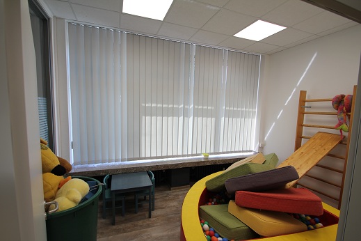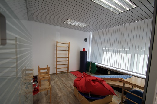Es stehen für die Kinderbehandlung große Räume mit Sprossenwänden, einem Bälle- und Kirschkernbad, Schaukelvorrichtungen,