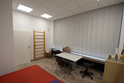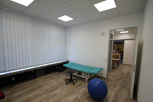 Jede Praxis besitzt Behandlungsräume für Erwachsene mit großen Therapieliegen, verstellbaren Tischen und Liegen,